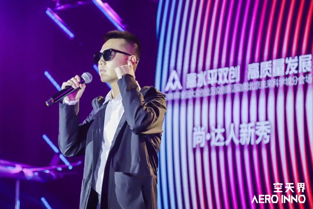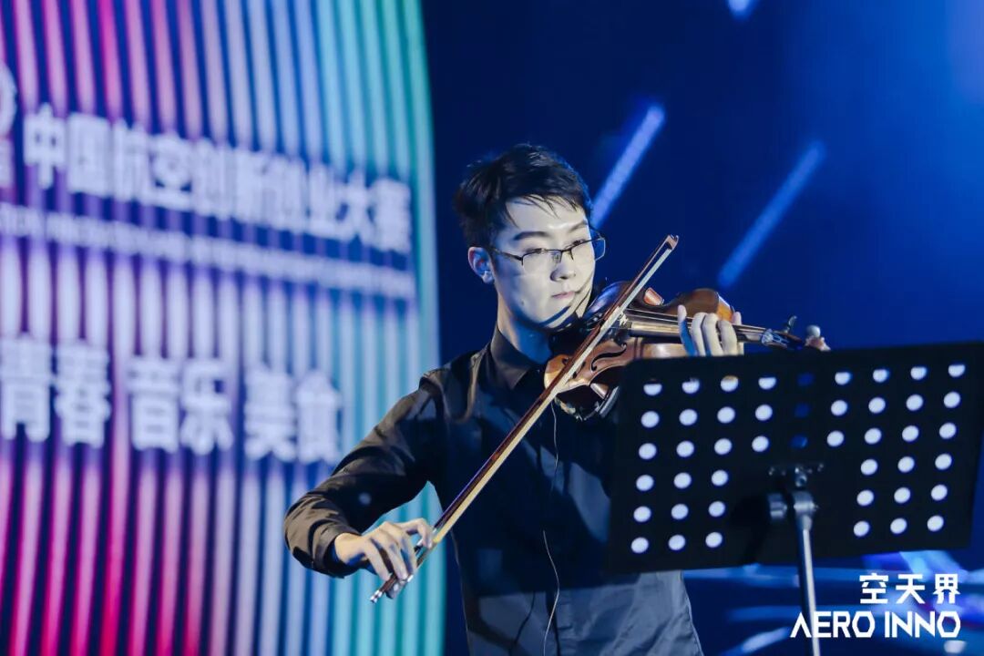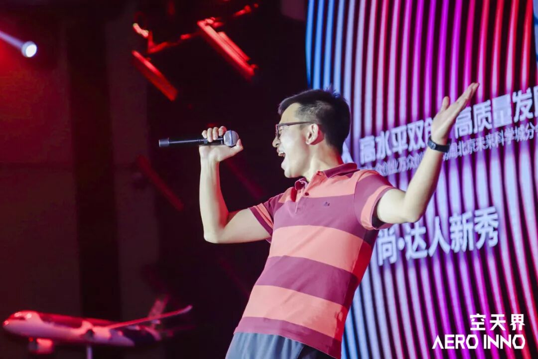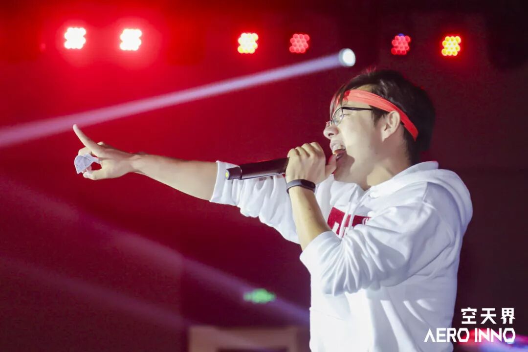 大赛创业组参赛项目,沈阳斯塔娜航空科技有限公司-复合材料螺旋桨及飞机其他高强度结构件项目的路演人郑伟和沈阳斯塔娜航空科技有限公司-复合材料螺旋桨及飞机其他高强度结构件的路演人李晨在台上合作多首歌曲,用歌声致敬创业路上的航空英雄。