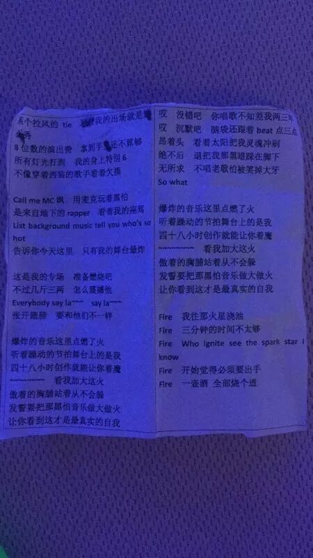 梁飒“Fire”的嘻哈歌词,据说是48小时内自编,自演!