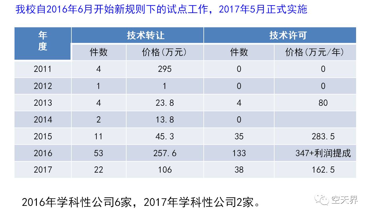 从2016年开始,虽然我们的办法没有开始出台,但是从7月份开始用新的规则,去做这方面的试点工作。试点从7月份一直到年底,可以看到这个数据。无论是转让和许可的件数和价格,都远远超过前五年的综合,这是半年的时间已经远远超过了前五年的综合,这是数据对比。今年更多,因为我们大部分的成果转化,下半年可能集中一些,这是上半年的数据。由此来看,激发了在座各位的积极性。