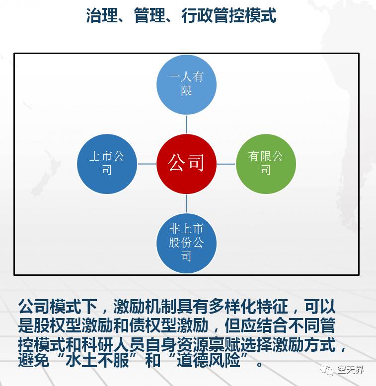 公司模式下,经理机制具有多样化的特征,可以是股权型、债权型,结合不同的管控模式,科研人员自身的禀赋资源来选择不同的方式,避免水土不服和道德风险。举一个简单的例子,曾经有一个技术人员发明了一项专有技术,他认为非常好,在业内有一定的声誉,民营企业、国有企业也找到了他,他最后找到了民营企业,民营企业给的钱多,相对比较灵活一些。他进去了拿了20%以后,他作为股东进去。但是最后的效果并不是很好。为什么?民营企业有时候他的垂直管理个人意志太强了,受的制约比较多,做的面太多了。给科技成果许诺很多,但是兑现比较难。这种情况下存在道德风险,因为你答应的很多事情没办法兑现,这就是道德风险。